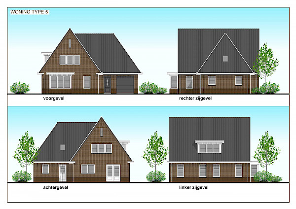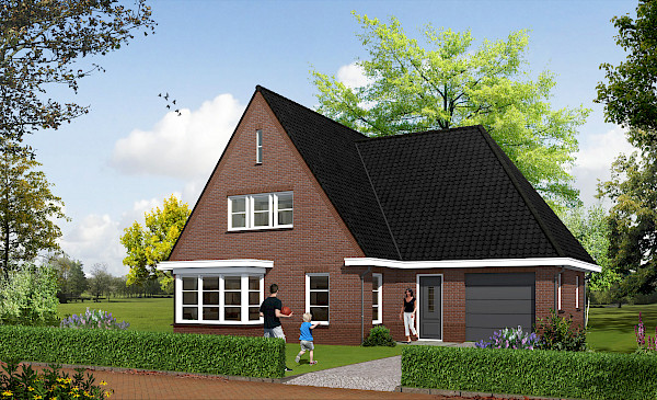 Dit is duidelijk de grote broer van de jaren dertig ‘light’ variant. Dezelfde belijning in de kozijnen, dezelfde brede gootoversteek en dezelfde steile kap. Of toch niet? De uitbouw met eenzelfde kap geeft dit woningtype weer een geheel eigen gezicht.