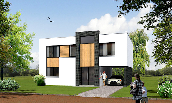 Strakke, heldere lijnen en mooi materiaalgebruik. Hier draait alles om de juiste detaillering. Zwarte baksteen wordt afgewisseld met mooie glaspartijen die zorgen voor transparantie. Deze worden omlijnd met zwarte kozijnen die mooi afsteken tegen het strakke stuukwerk. De houten betimmeringen verbinden de vlakken met elkaar en zorgen voor een warm accent.